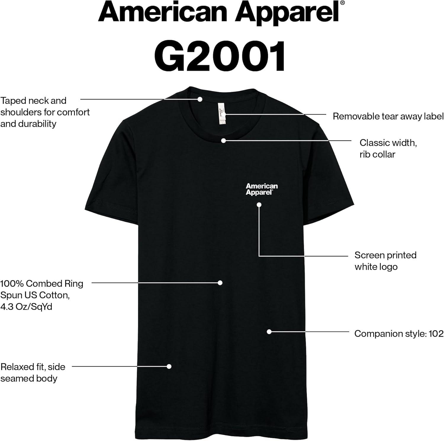American Apparel Adult Fine Jersey T-Shirt, Style G2001, Multipack(Black – White Logo Left (Print 1-pack))