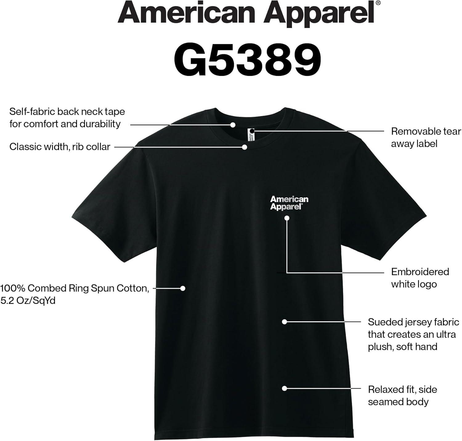 American Apparel Adult Sueded Style G5389 T-shirt (Multipack)(Sueded Black – White Logo Left (Embroidered 1-pack))