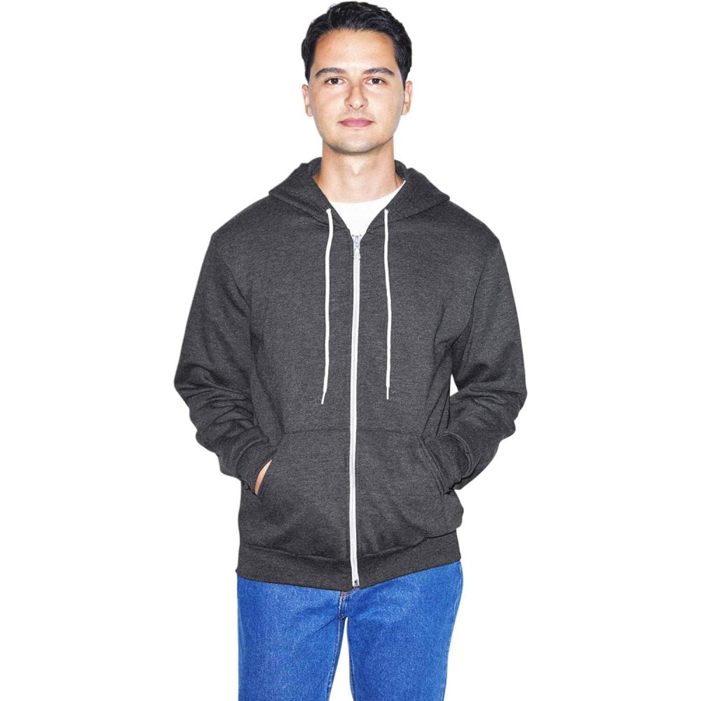 American Apparel mens Flex Fleece Long Sleeve Zip Hoodie(Dark Heather Grey)