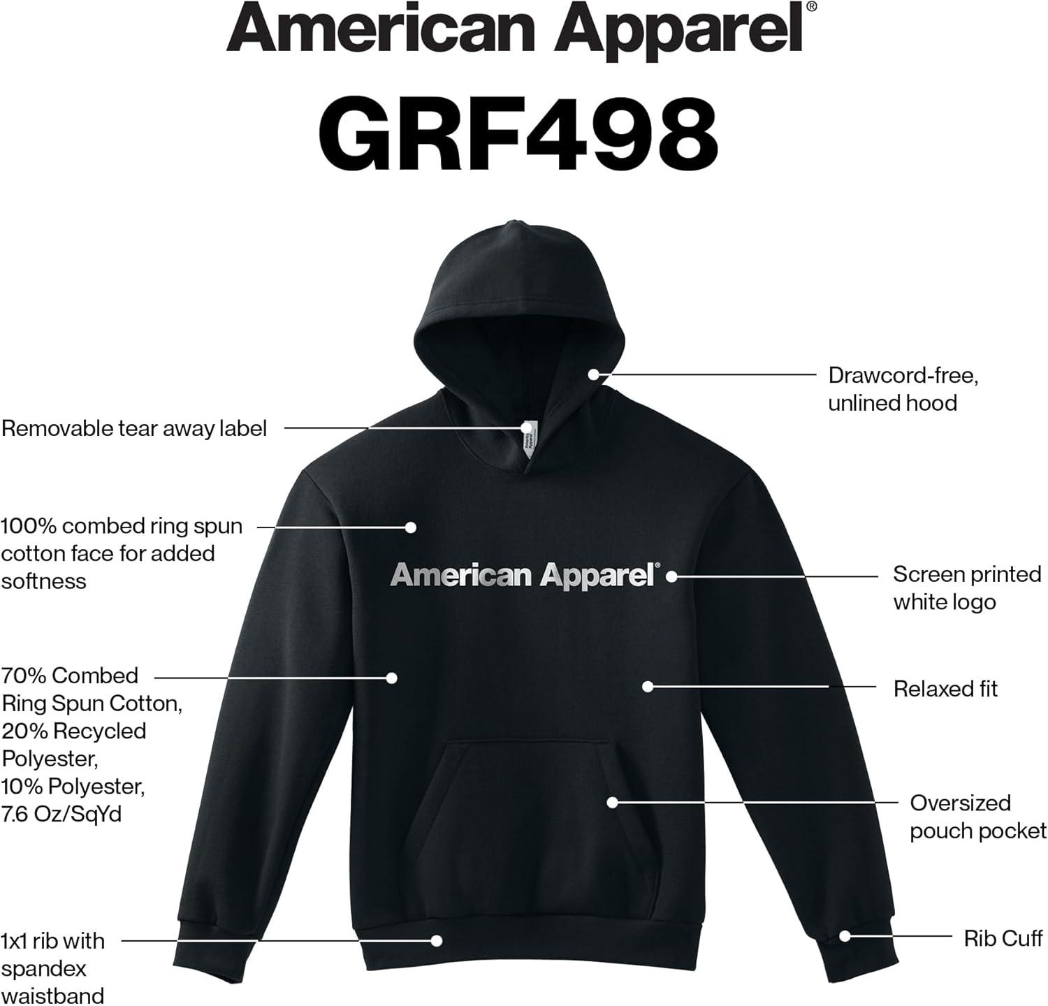 American Apparel unisex-adult Reflex Fleece Pullover Hoodie Sweatshirt, Grf498aa(Black – White Logo Center (Print 1-pack))