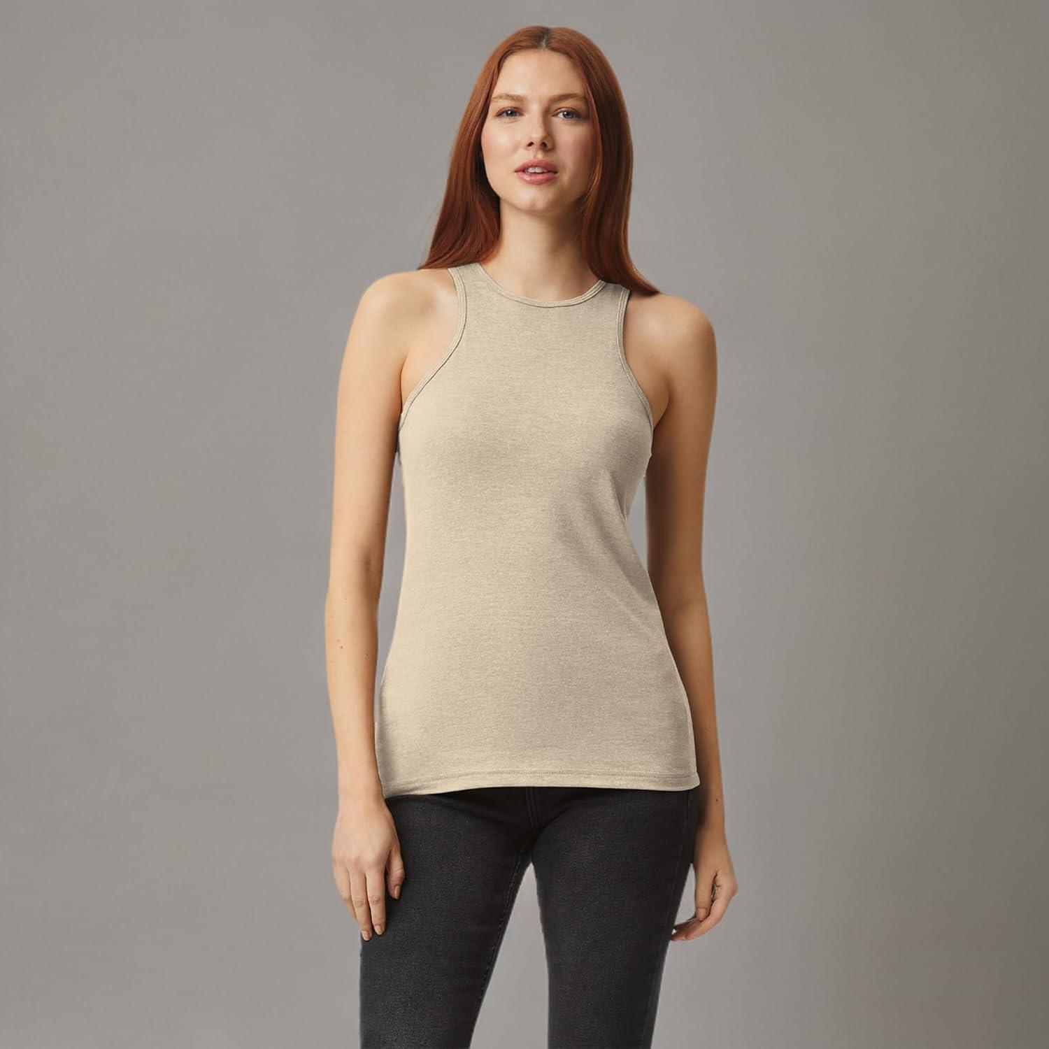 American Apparel Womens CVC Racerneck Tank, Style G101cvc, 2-Pack(Heather Bone (2-pack))