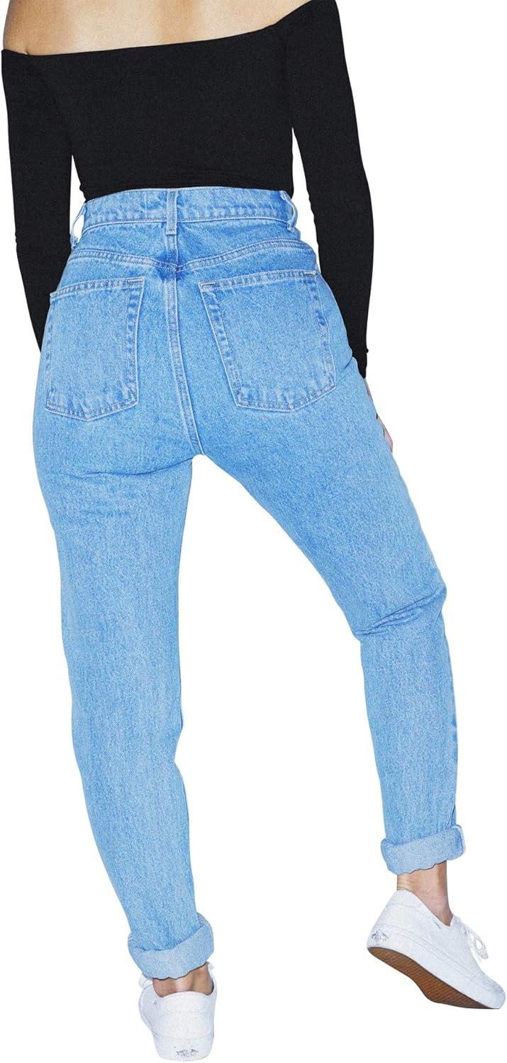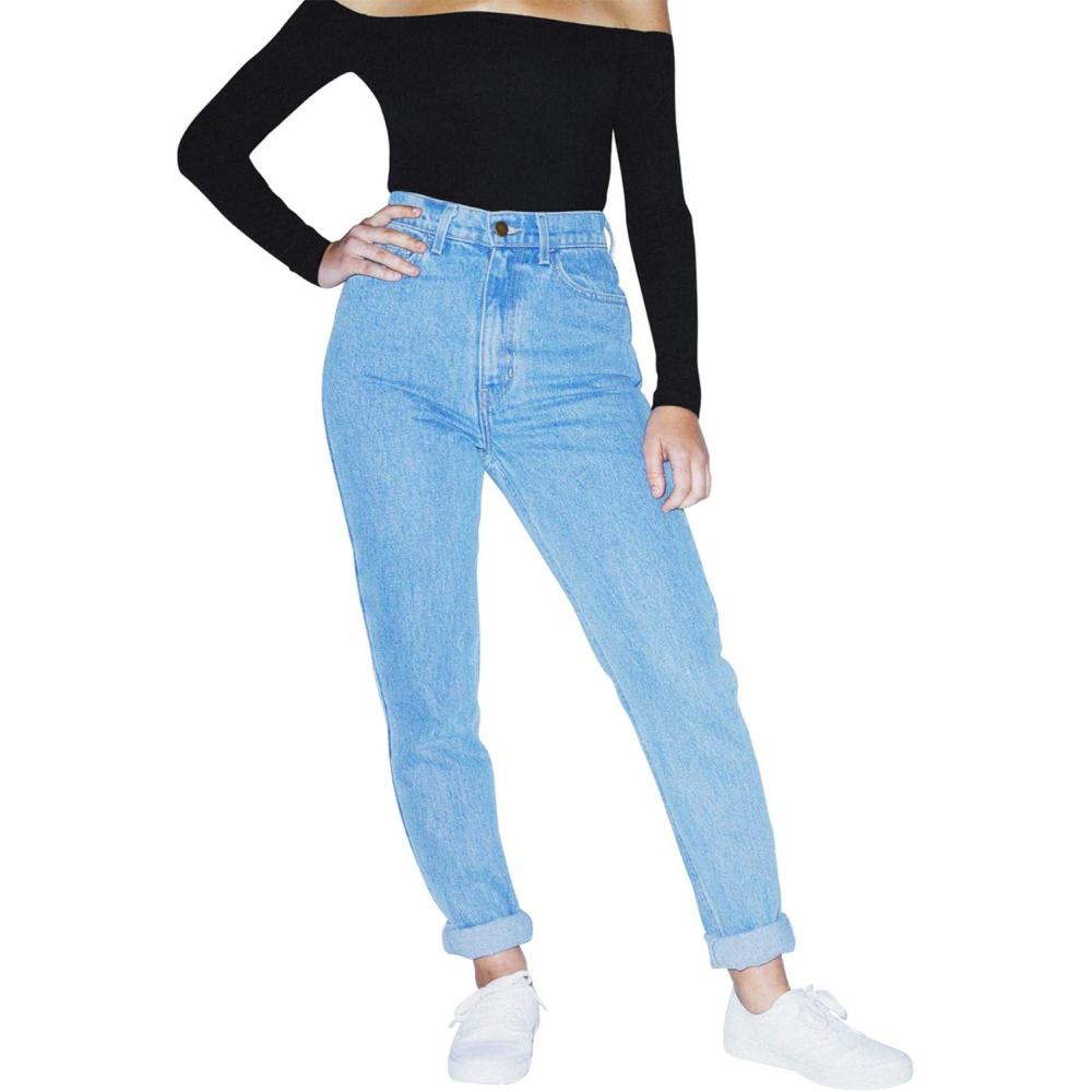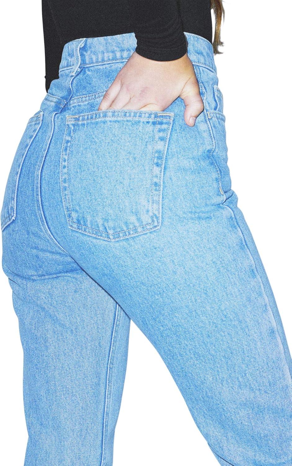Vintage inspired high rise mom jean featuring a straight leg that tapers in at the ankle. Finished with a zip fly and four pockets. This 14 ounce denim is rigid for a more authentic, vintage feel. Our best selling jean. Everyday staple. Machine wash cold. Do not bleach. Tumble dry low. Cool iron. Do not dry clean. American Apparel is an iconic brand with a unique history and distinct culture that has gained a fiercely loyal customer following and tremendous Global brand awareness. We operate at the intersection of style, integrity, and ethics from start to finish.