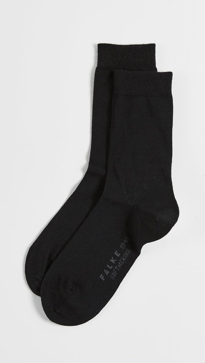 FALKE Women’s Softmerino Socks, Merino Wool Cotton, Crew, 1 Pair(Black)