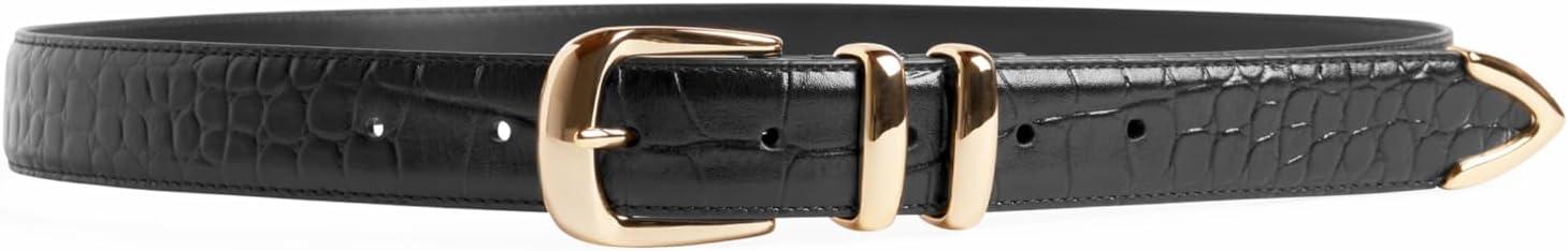 Favorite Daughter Women’s The Jordan Croc Embossed Belt(Black/ Gold)