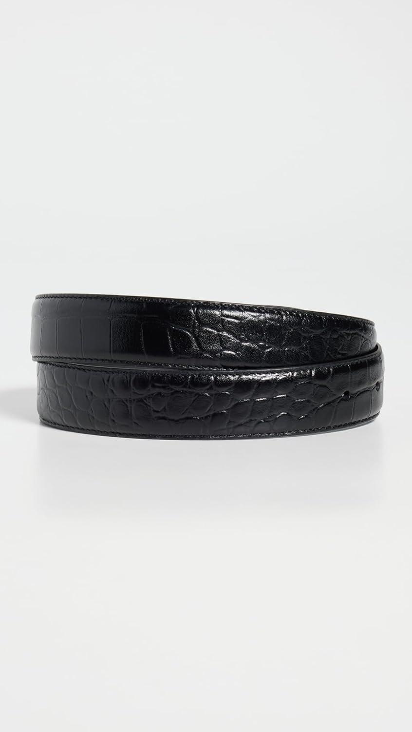 Buckle up–The Jordan Belt will be your new favorite accessory. This 30mm belt is crafted from embossed leather in a croc pattern with feather edge detailing and polished hardware. We especially love the seven prong holes that make it easy to adjust sizing so you can wear it slung at the hips or buckled at your waist.