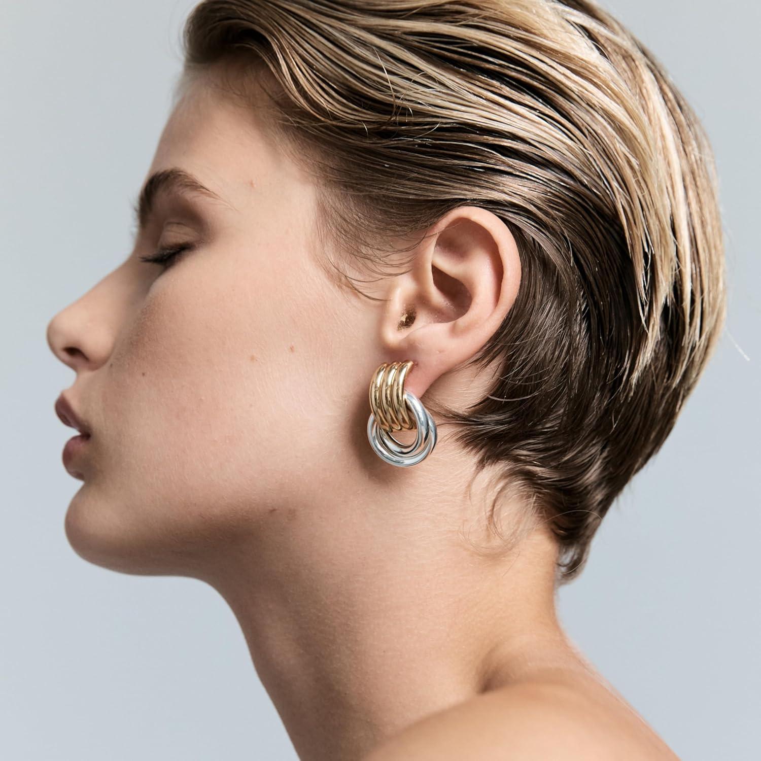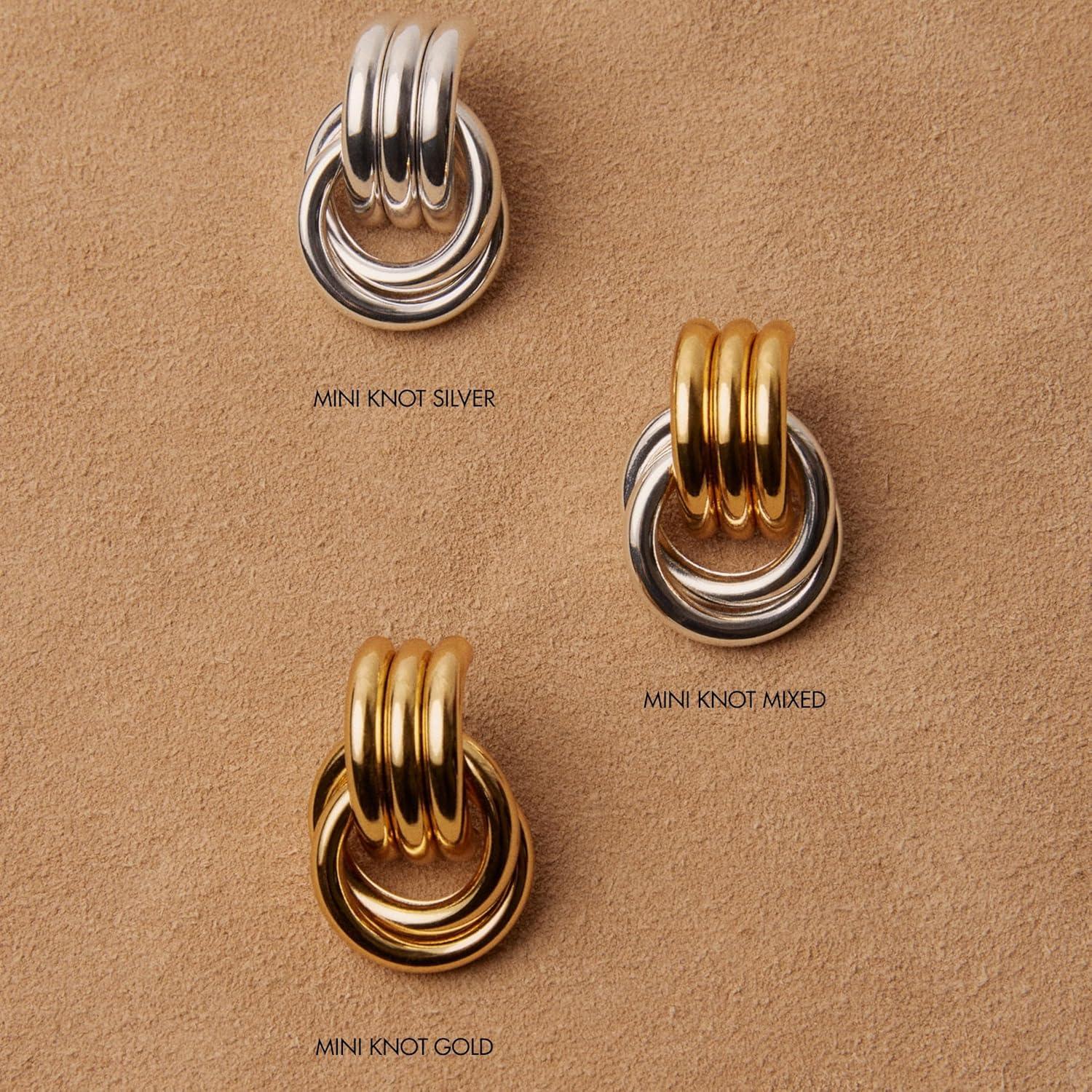 Heaven Mayhem Mini Knot Earrings – Sculptural Twisted Design – Lightweight(Knot Gold with Silver)