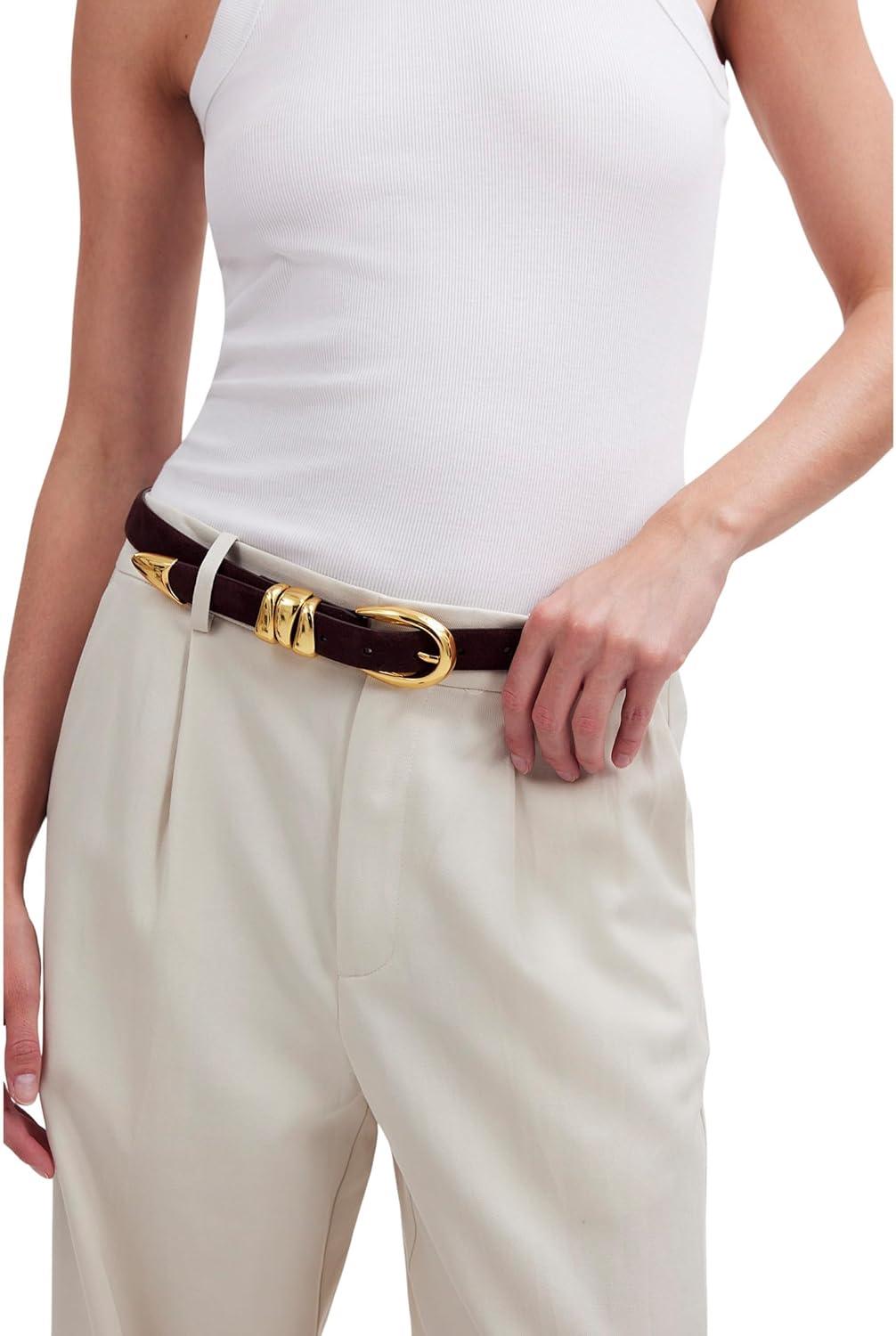 Madewell Women’s Chunky Metal Leather Belt(Chocolate Raisin)