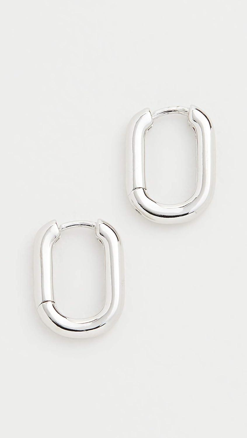 A simple pair of Shashi huggie earrings with a shimmery sheen and precise oval shape.