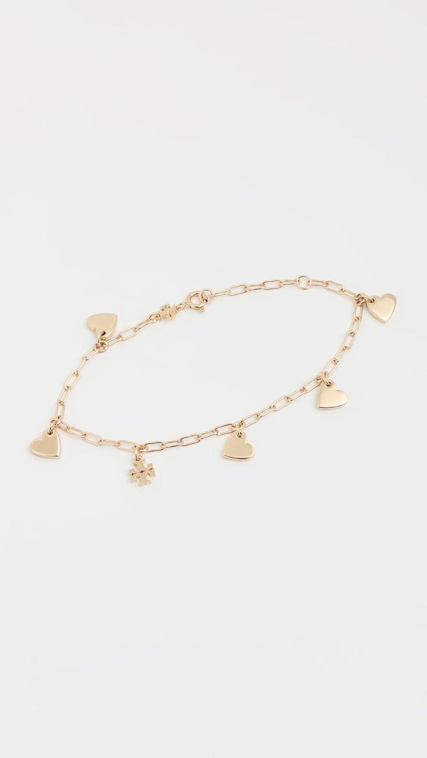 Tory Burch Women’s Good Luck Chain Heart Bracelet(Tory Gold)