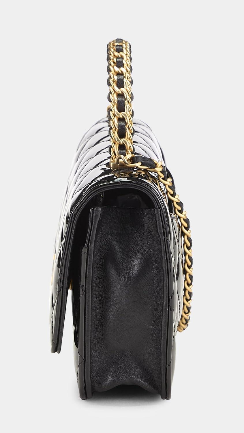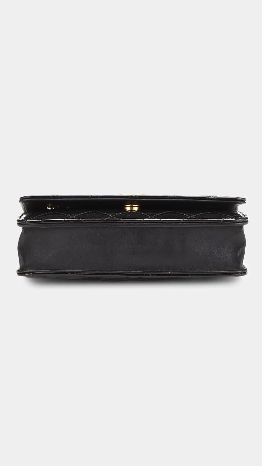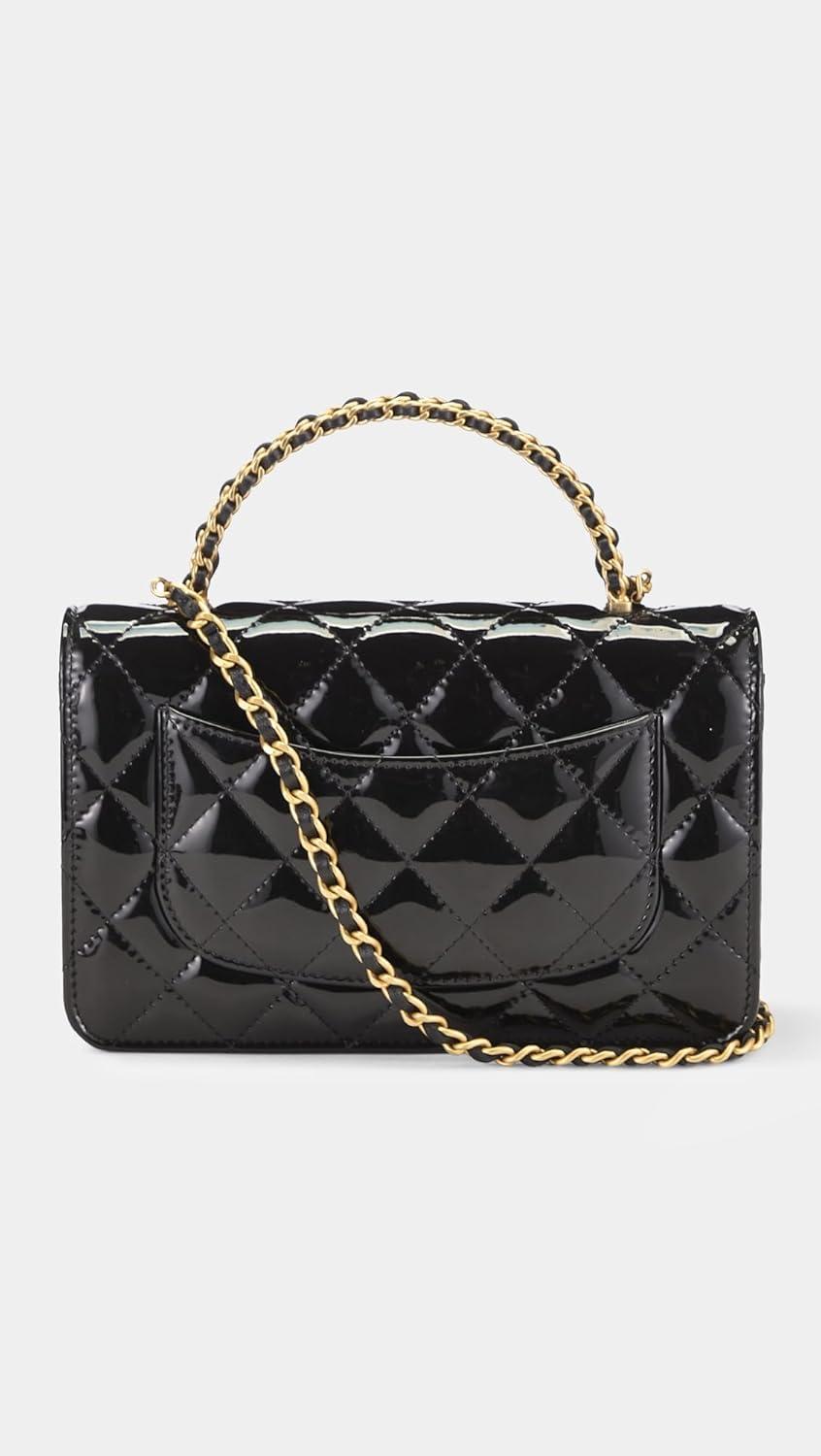 WHAT GOES AROUND COMES AROUND Women’s Pre-Loved Chanel Leather Patent Top Handle Wallet On Chain(Black)