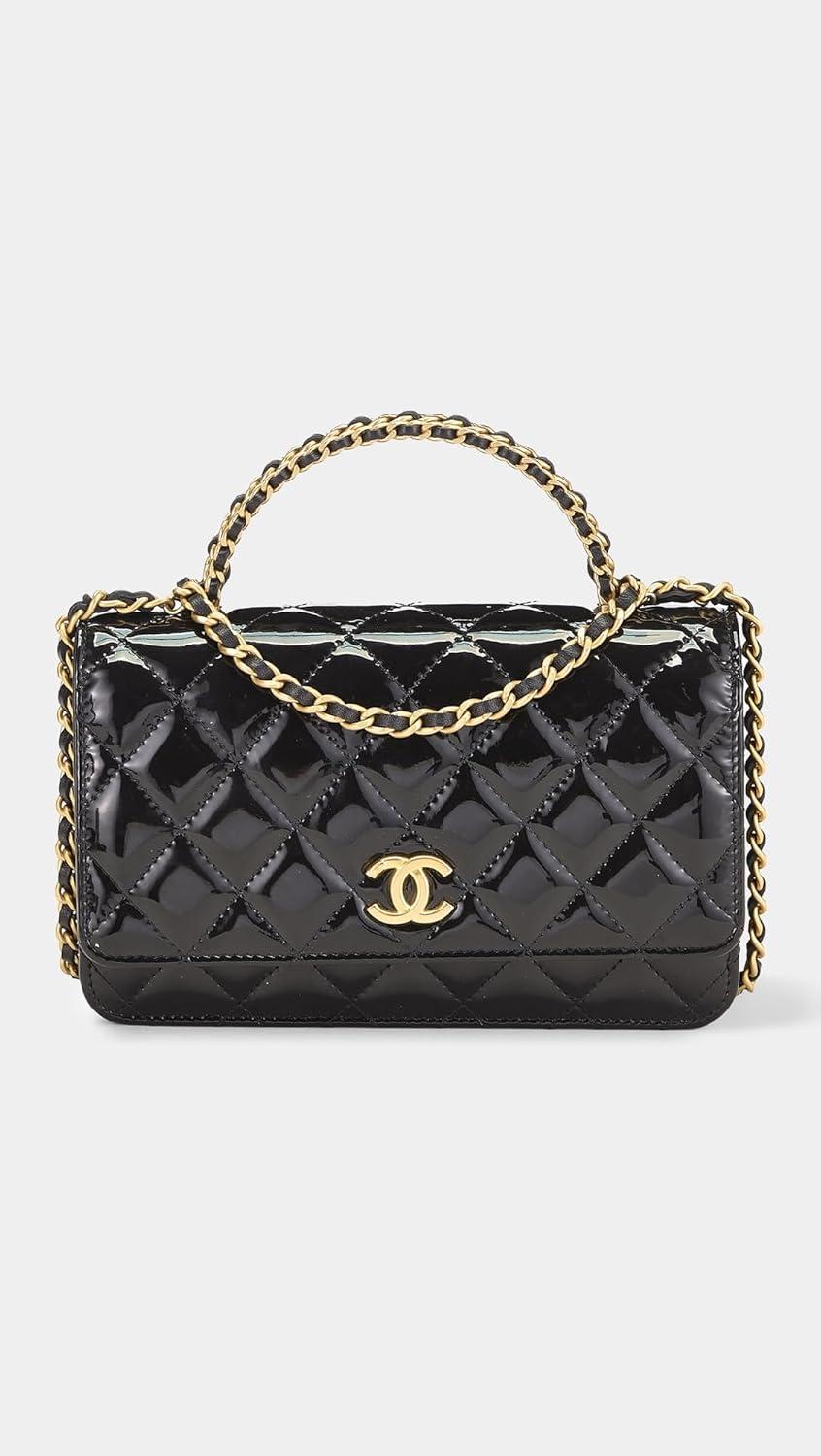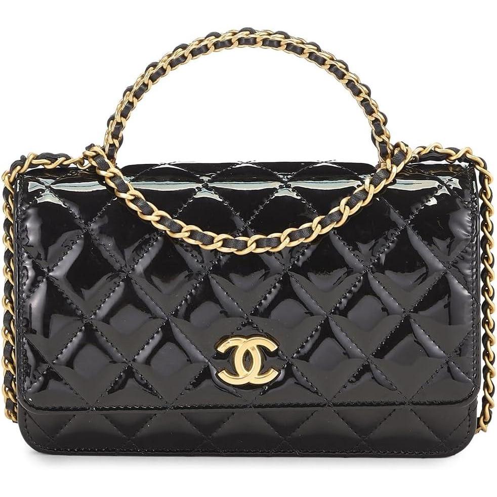 Chanel Leather Patent Top Handle Wallet On Chain