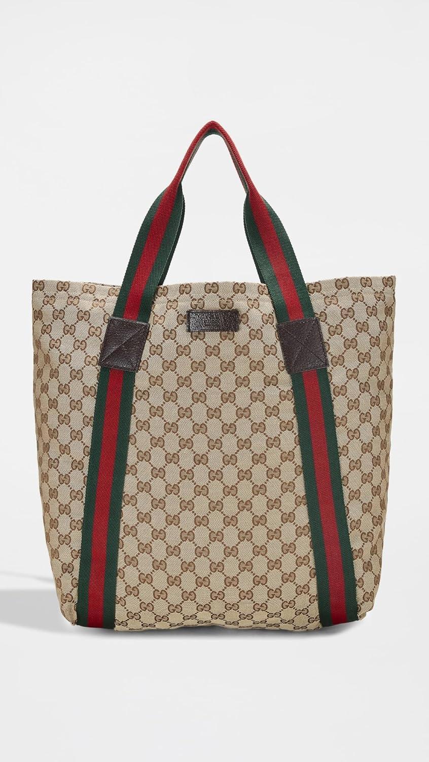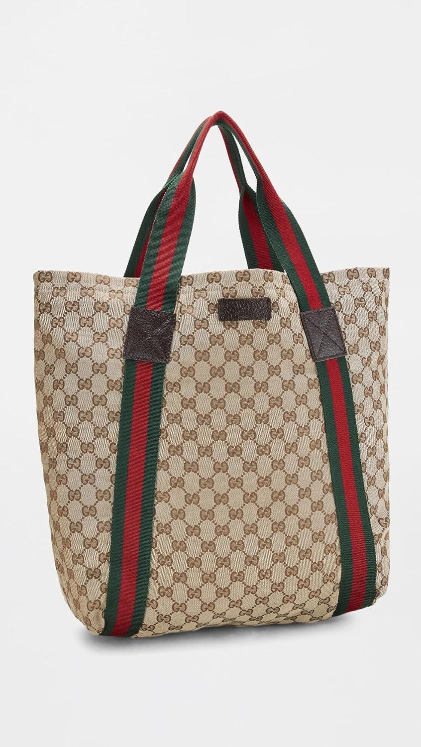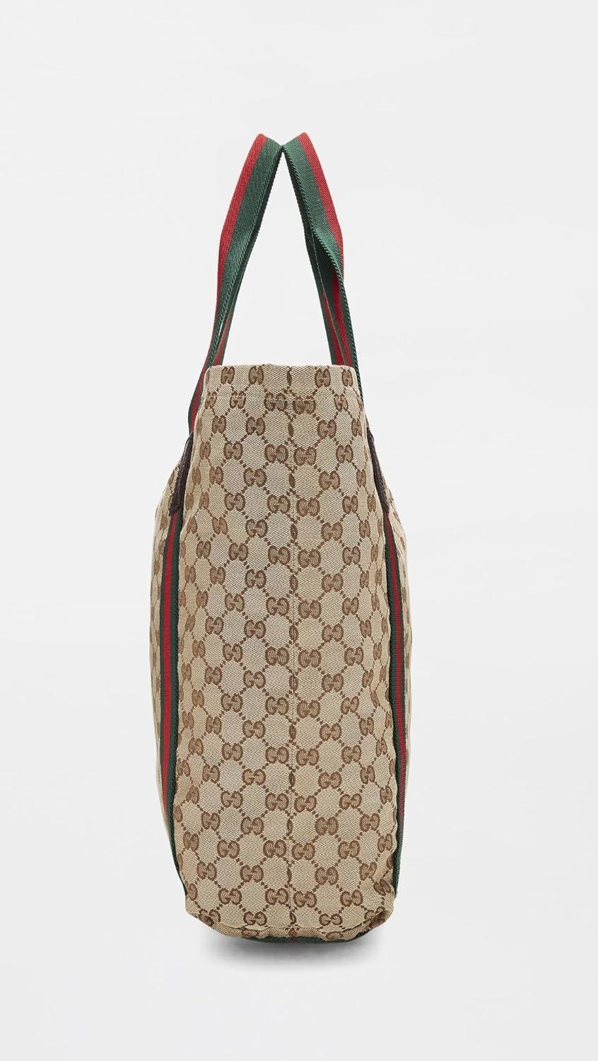 WHAT GOES AROUND COMES AROUND Women’s Pre-Loved Gucci Brown Canvas Flat Web Tote