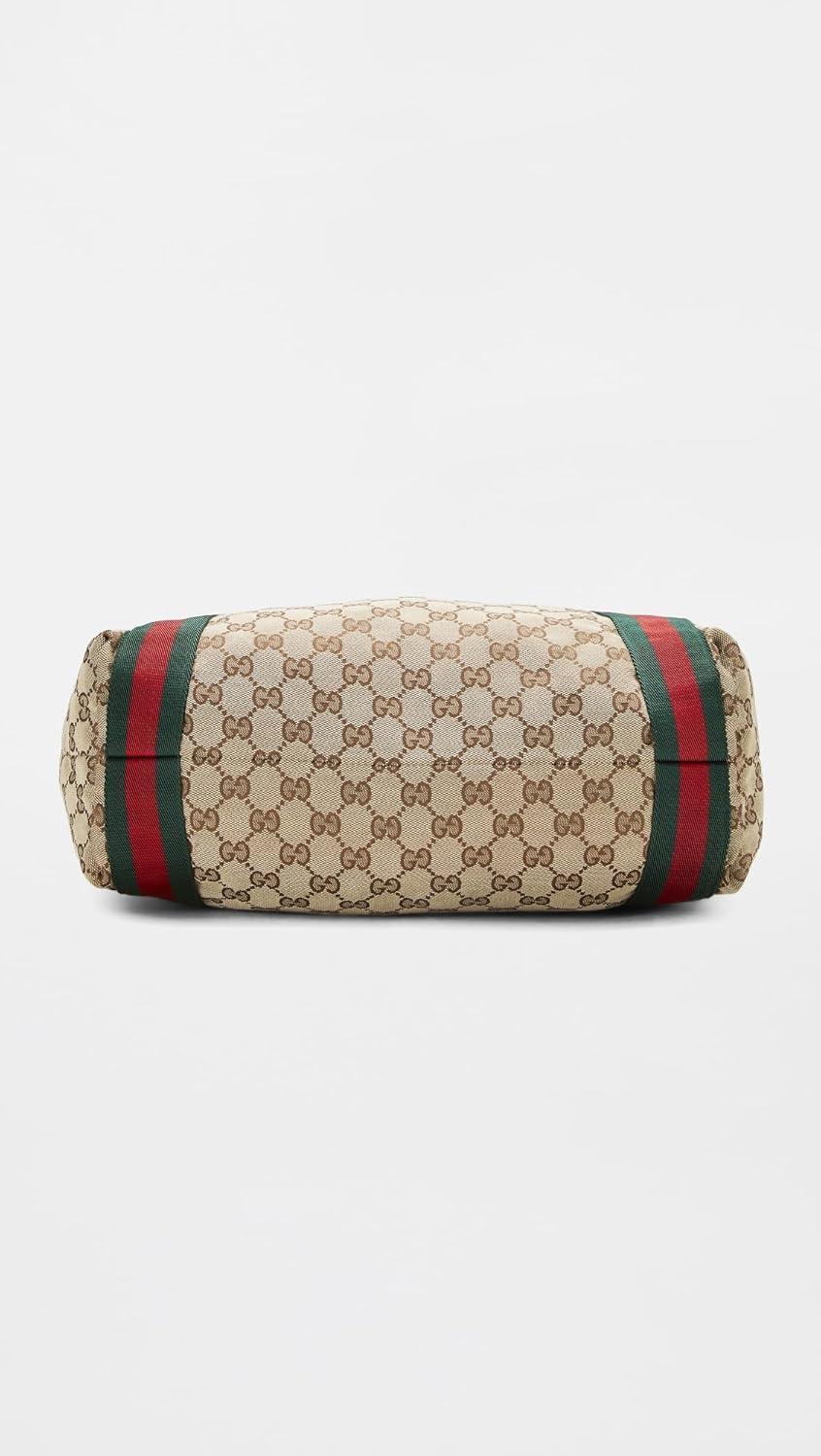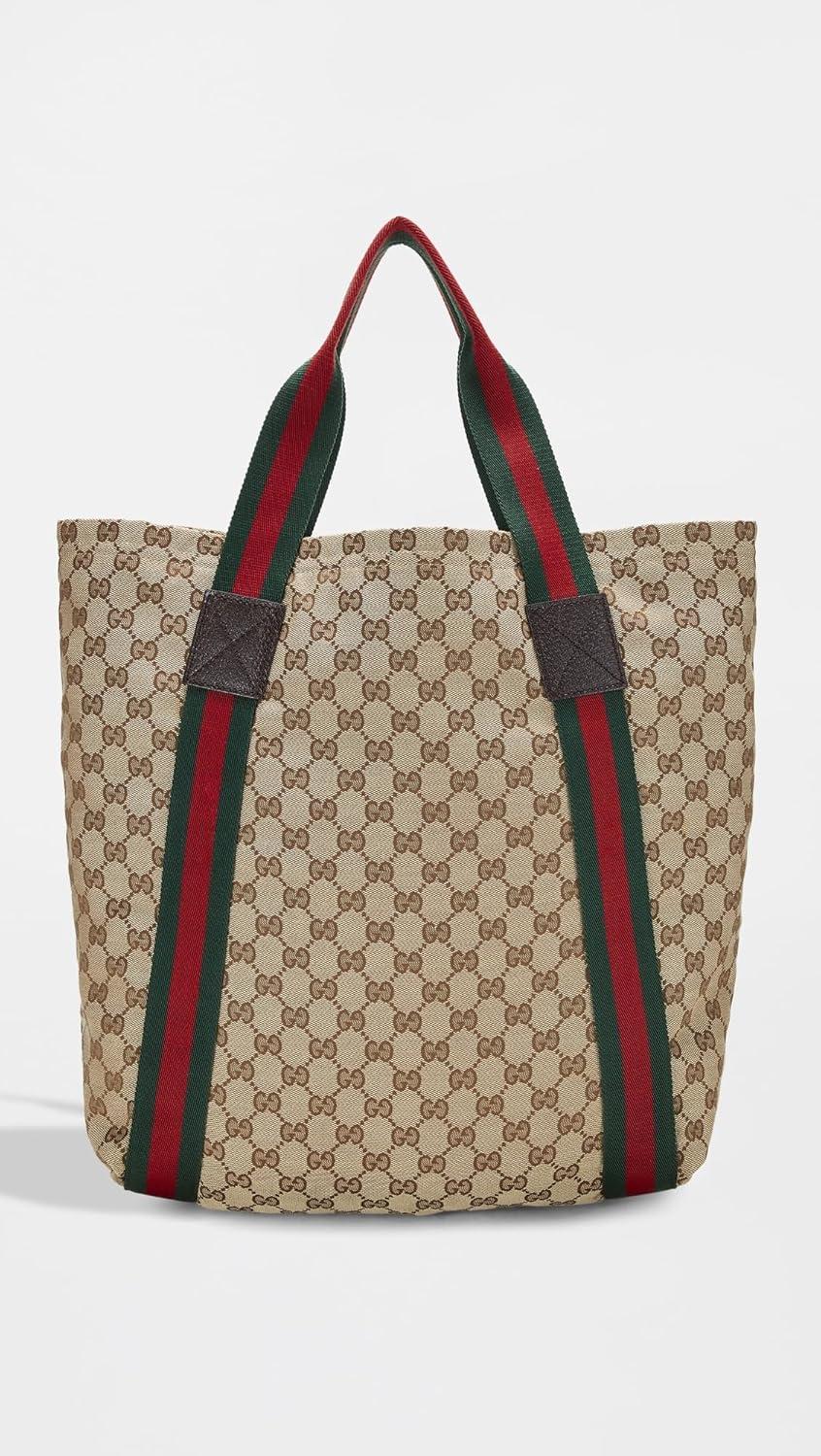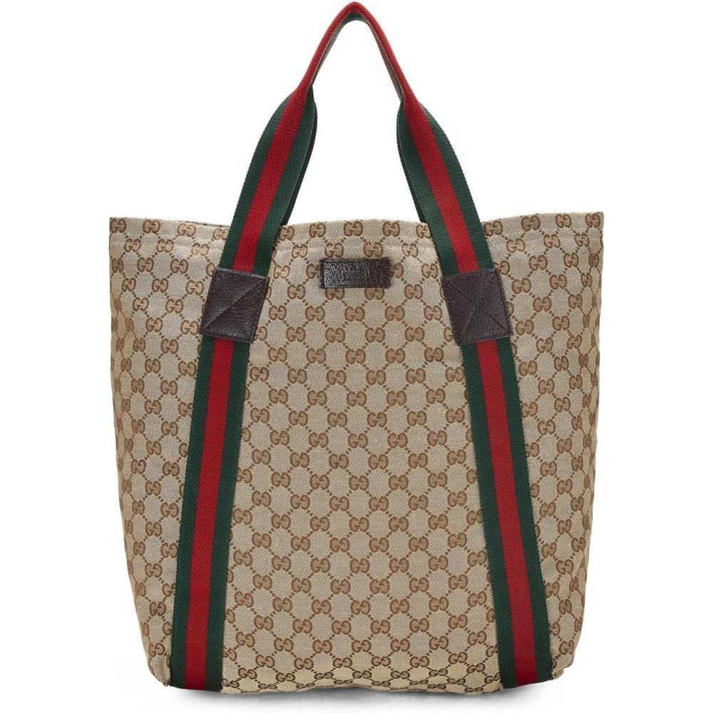 WHAT GOES AROUND COMES AROUND Women’s Pre-Loved Gucci Brown Canvas Flat Web Tote