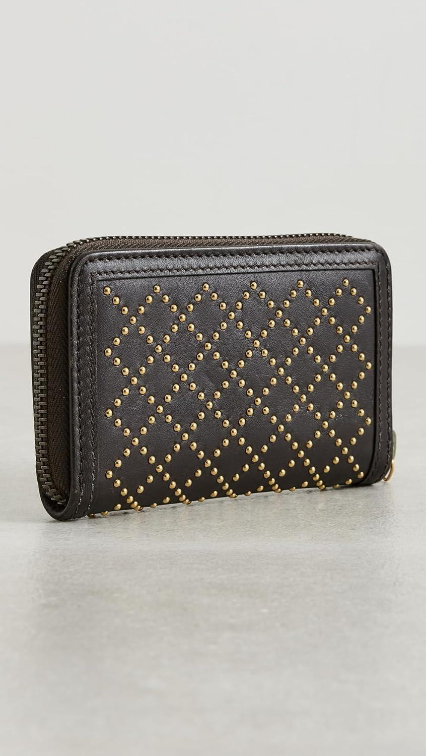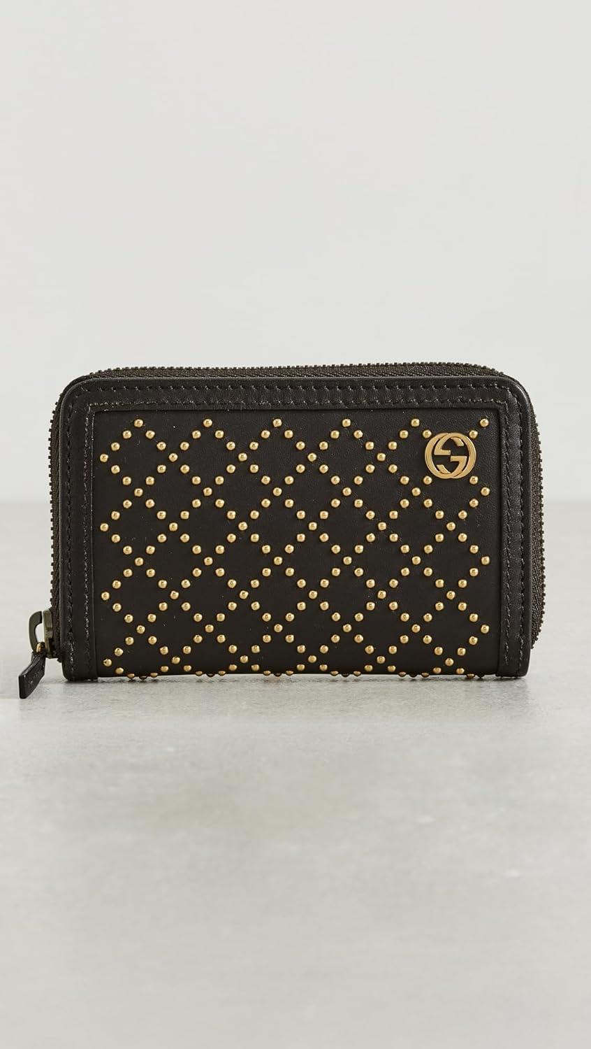 WHAT GOES AROUND COMES AROUND Women’s Pre-Loved Gucci Brown Studded Zip Around Coin Purse(Brown)