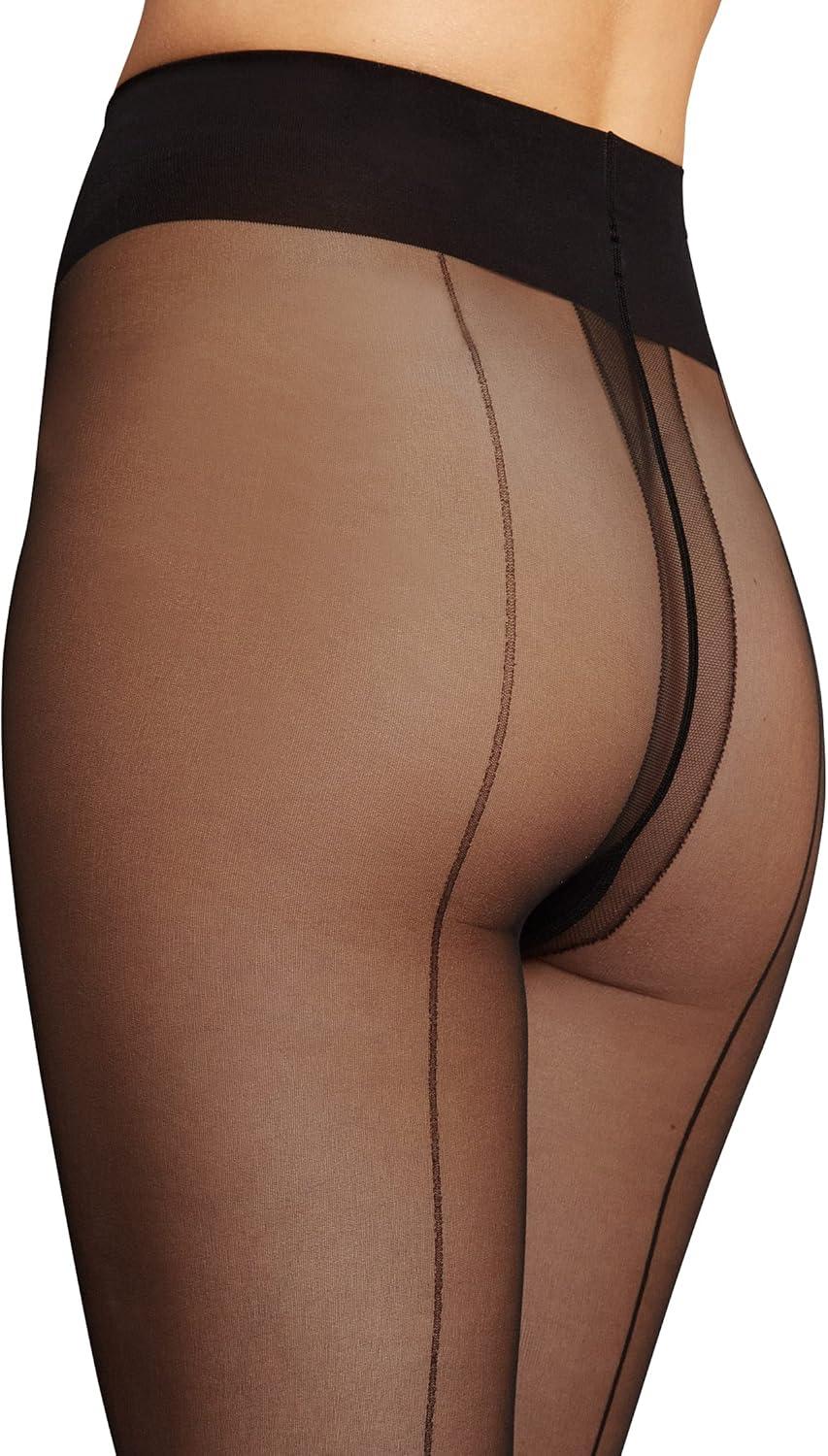 Wolford Individual 10 Den Back Seam Tights for Women Ultra Sheer Matte Pantyhose Logo Waistband Invisible Toe Reinforcement(Black)